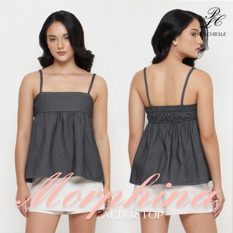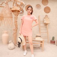 Soft peach color, with red embroidery, fitted slim fit.